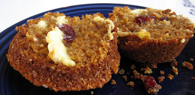 my favorite kind of muffin–chock-full of fiber and other healthy stuff, and delicious at the same time. very nice (and great melted butter shots!). 🙂