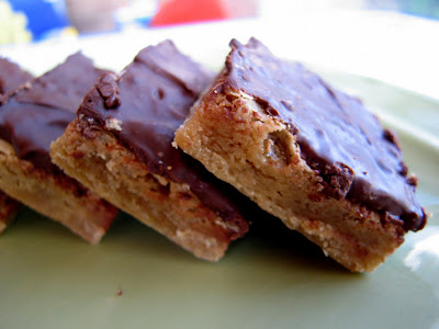 Let cool for 10 minutes on a cooling rack. Then remove the bars by using the parchment paper and let cool completely on the cooling rack. After the chocolate has mostly but not totally set, slice into bars.