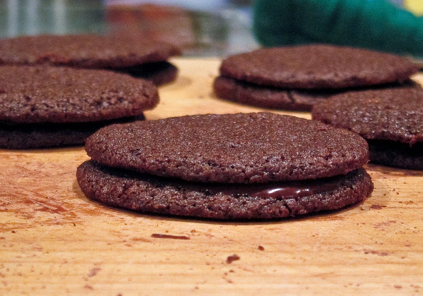 - 2 T unsalted butter, optional (my house is cool--the cookies made without the butter are undeniably crunchier as the chocolate filling is much harder)