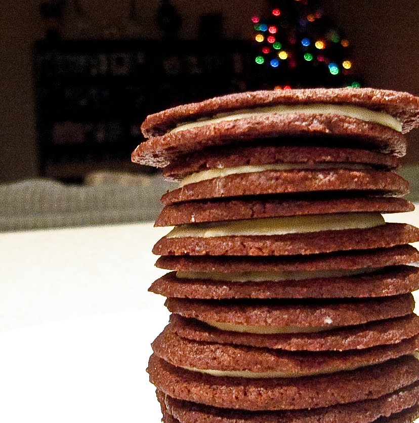 These cookies, adapted from another winner in Alice Medrich’s Chewy Gooey Crispy Crunchy Melt-in-Your-Mouth Cookies by Alice Medrich, have been every bit as much of a revelation as Scottish shortbread, another holiday cookie I came to late in life but have since adopted as my own tradition. This is actually the first time I have ever made sandwich cookies, and I cannot imagine a better one for the holidays than these. They keep in a tin, unlike many buttercream filled cookies that need refrigeration. They are made with delightfully crispy wafers which once again will keep in a tin without going soggy or stale. And last, but certainly not least, they are peppermint chocolate, quite possibly my favorite holiday flavor.