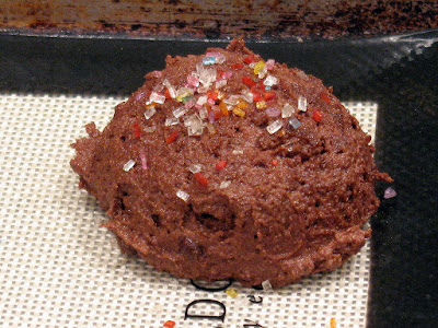 Using a 2 inch ice cream scoop or size-24 disher, drop dough onto baking sheets lined with parchment paper, 6 cookies per sheet. Using your hand, quickly and gently pat them slightly flat. Sprinkle coarse sugar (I used Swedish pearl sugar in the later pics) on top of the cookie dough and coarse sea salt if desired (the later pictures have sea salt).