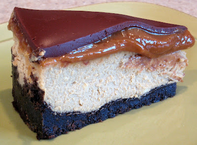 I love cheesecakes. And I’ve seen a lot of awesome ones in my life. But this has to be the most tempting cheesecake I have ever seen! The caramel oozing out from under the chocolate is just teasing me!