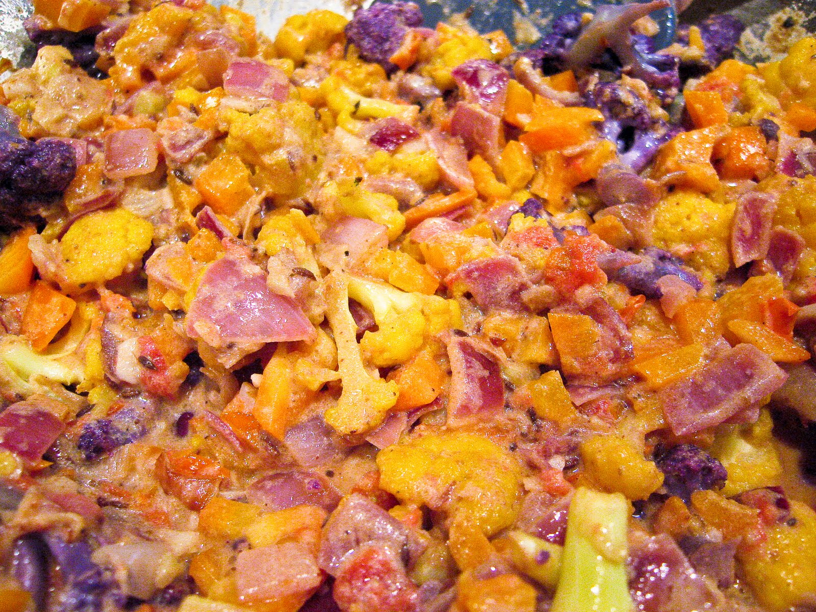 Funny about the color thing. Yael will eat all colors of cauliflower, infinitely — but when I buy the purple or orange she is definitely happier. It's like candy food or something!