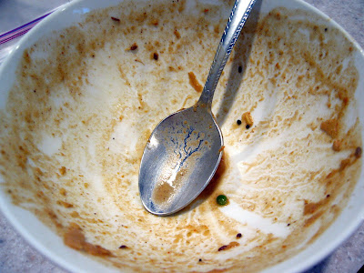 Mix with the yogurt, either in the pot or the bowl (see comments above), and sprinkle with cilantro. Add lime wedges and more cayenne pepper if desired. I highly recommend a sweet/sour chutney like tamarind as well.