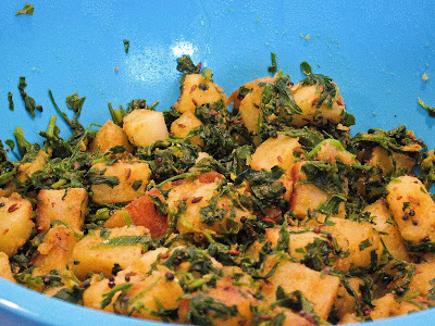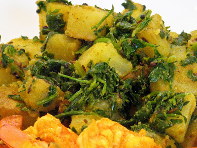 Khatte Aloo Methi (Potatoes With Fenugreek Greens)