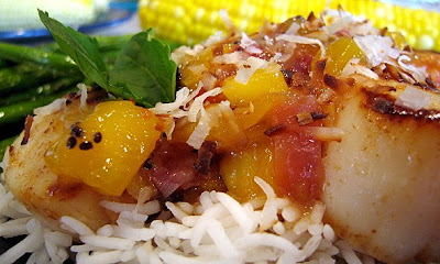 Enter Jaden of Steamy Kitchen and Simply Recipes. Confused since Jaden does not write Simply Recipes, Elise does? Well Jaden was guest blogging on Simply Recipes. Anyway, now that we have that straightened out, the point is that I was reading Simply Recipes when I came across Jaden’s recipe for Sauteed Shrimp With Warm Tropical Fruit Salsa.