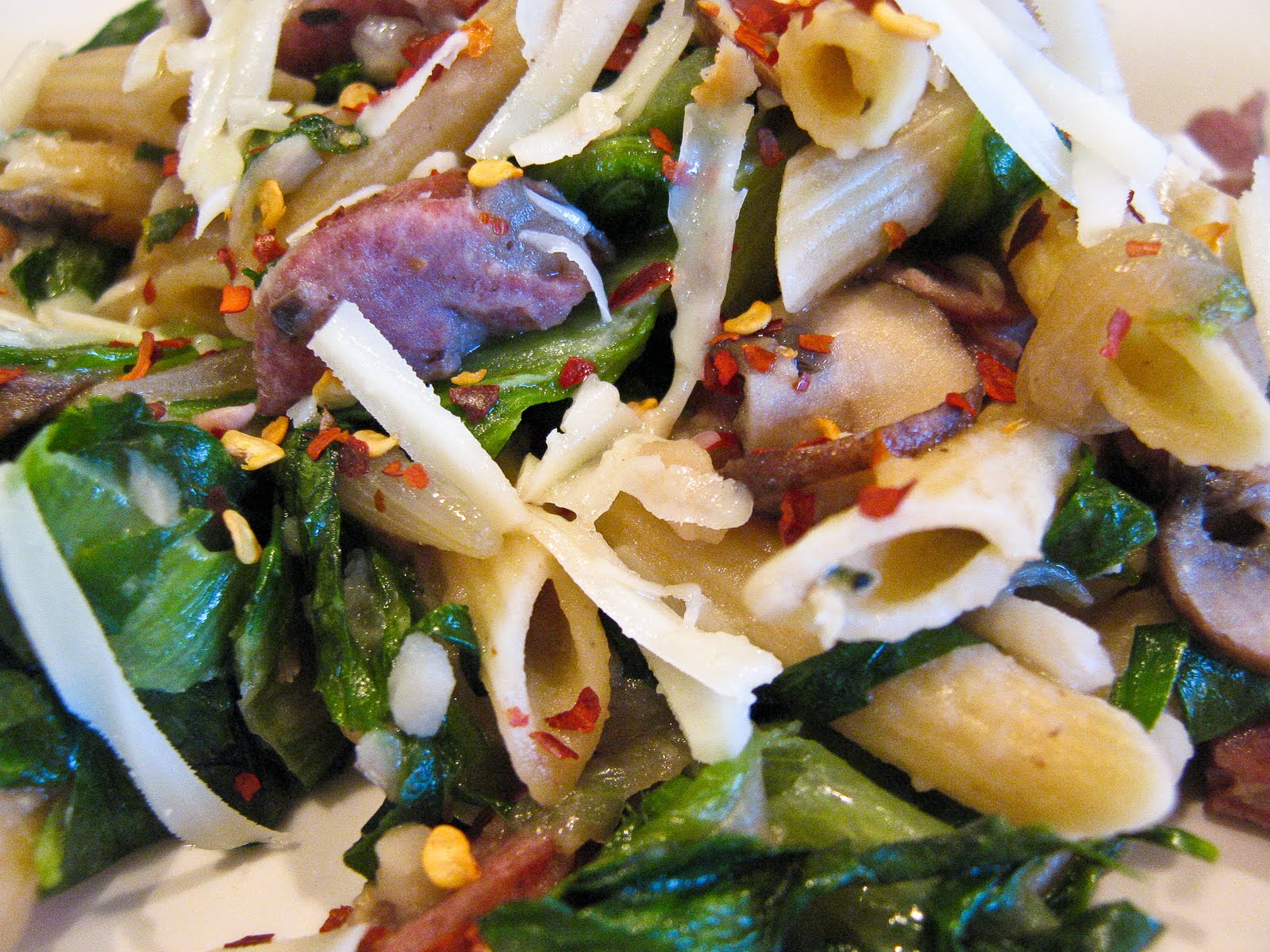 Really like the combinations of ingredients and flavors here in this penne dish. Use of pepper flakes and asiago is always icing on the cake for me – luv it!