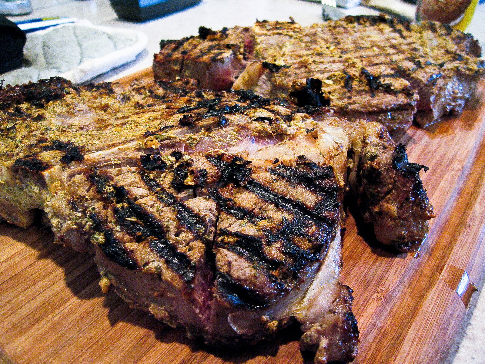 Heat a grill before serving–I grilled indoors but outdoors is obviously fine too. Place the steaks on the grill and cook to desired doneness, turning occasionally and basting with the reserved marinade. Let sit for 10 minutes off the grill before serving.